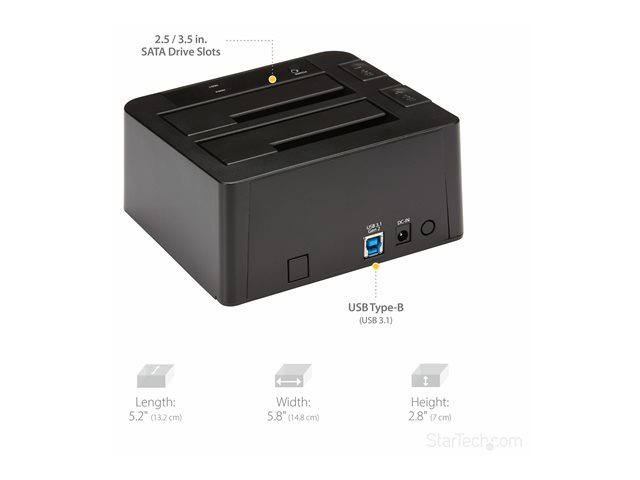 StarTech.com Dual-Bay USB 3.1 to SATA Hard Drive Docking Station, USB 3.1 (10 Gbps) Hard Drive Dock, External 2.53.5 SATA IIIIII, SSDHDD Docking Station, Hot-Swap Hard Drive Bay